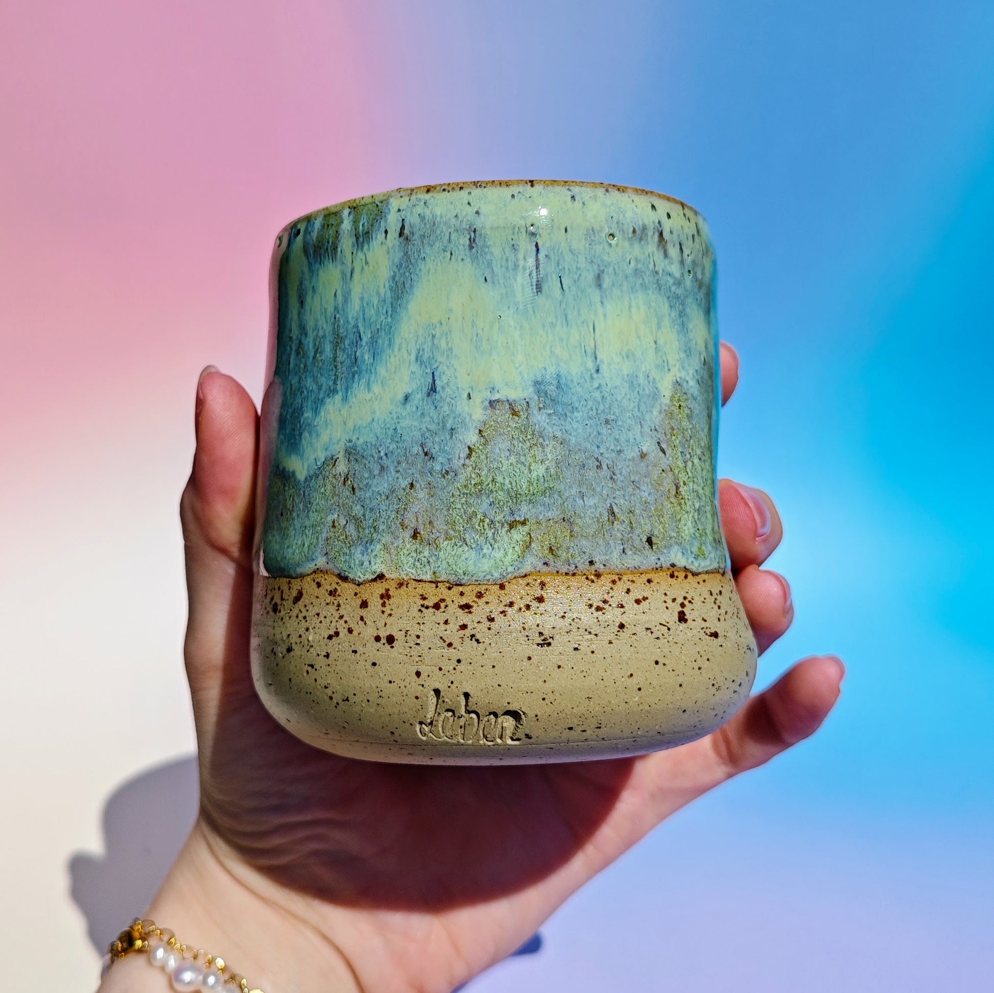 Liebevoll handgemachte Steinzeug-Keramik mit einer hellgrünen Glasur.
